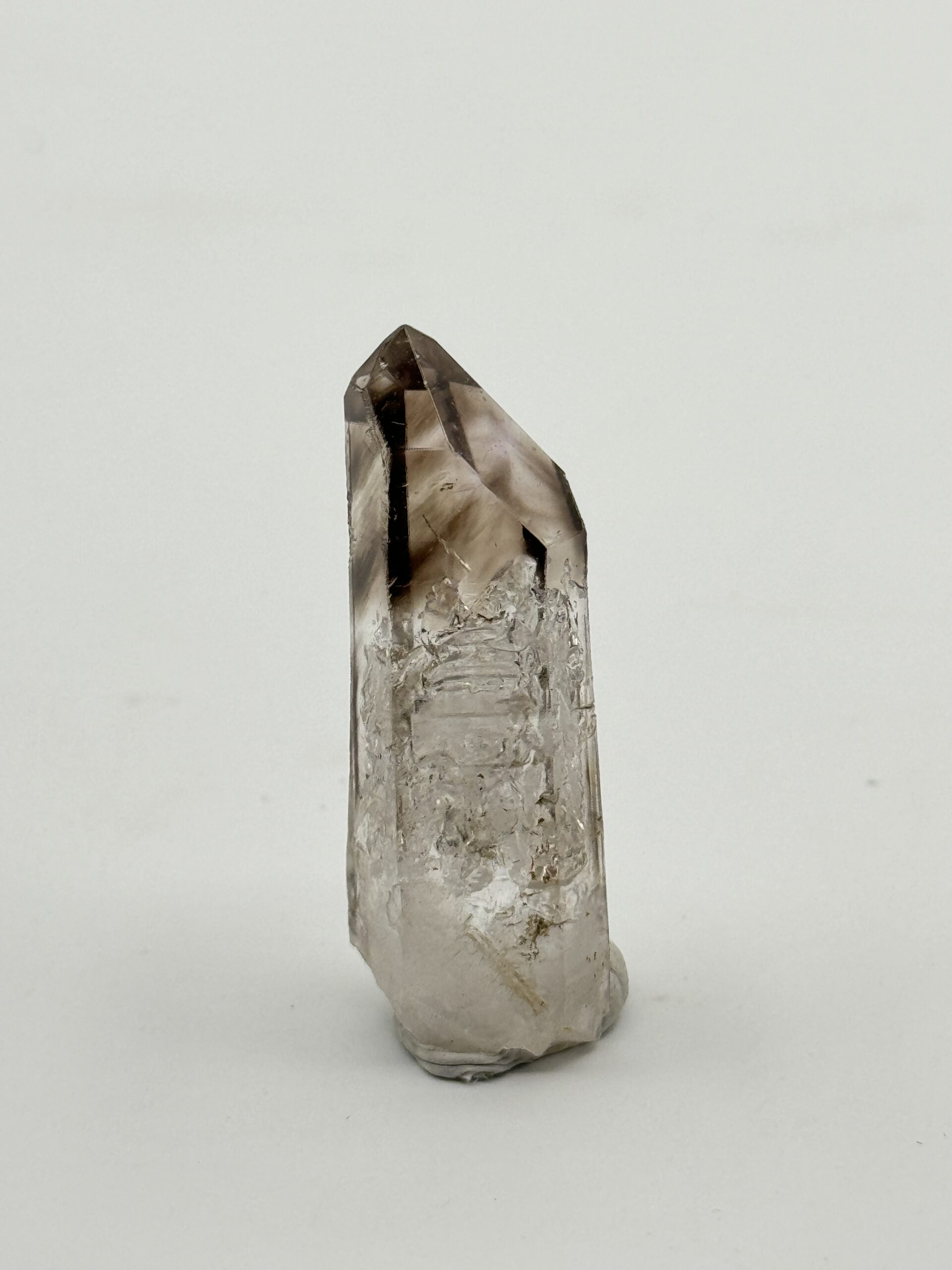 Smoky Quartz crystal with multiple phantoms and skeletal growth. This mineral specimen is rather gemmy and shows great aesthetic.